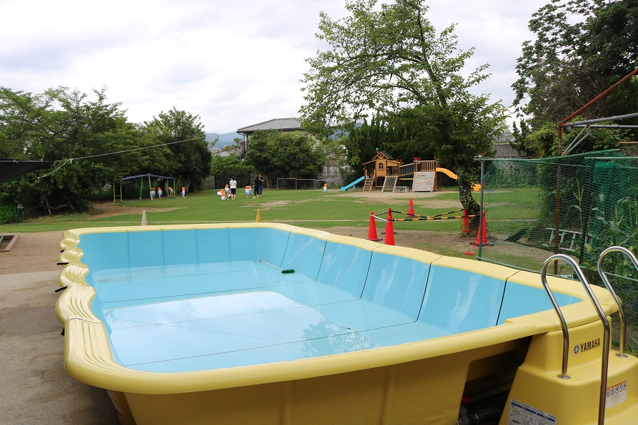 2歳児つぼみ組では水着に着替えて「ぬたくり遊び」