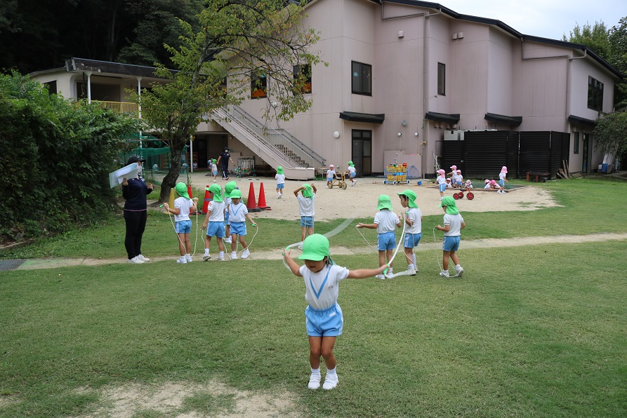 そこへ、年中たんぽぽ組のみんなが縄跳びを持って