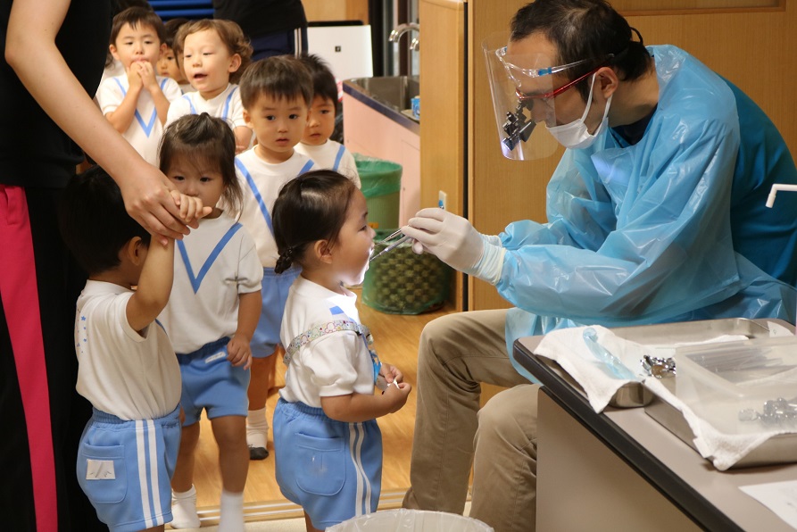 今日は2歳児こぐま組とつぼみ組の歯科検診
