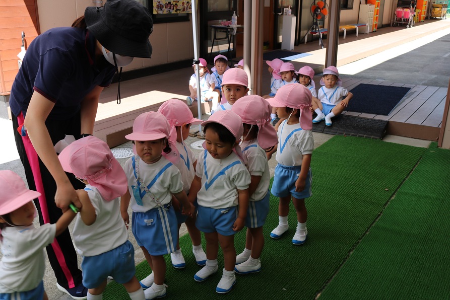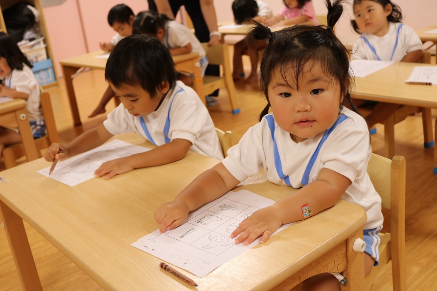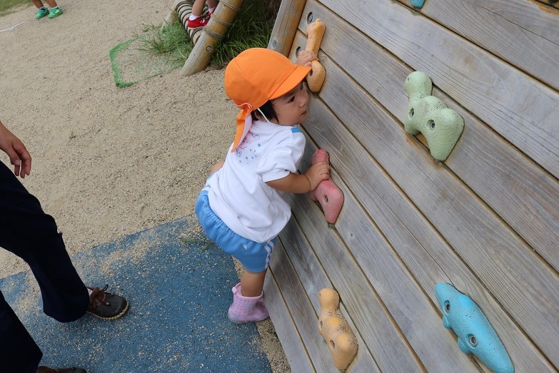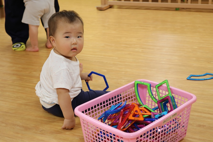 ご機嫌よくおもちゃ遊びをする0歳児ひよこ組
