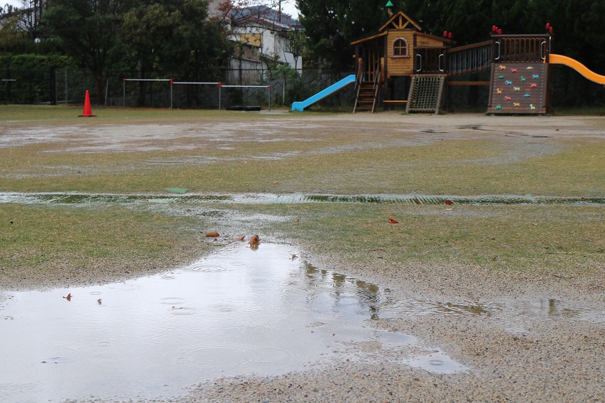 しかし、昨日から続く雨で園庭はべちゃべちゃ😢