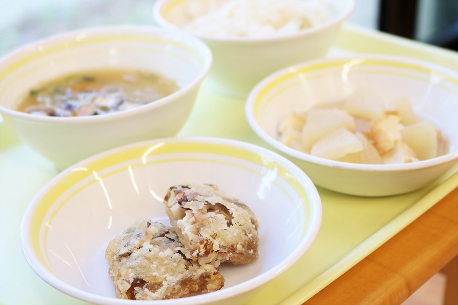 とっても美味しそうに給食を食べていました