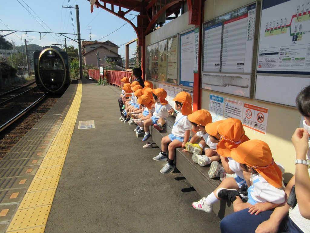 1歳児こじか組が叡電「みやけはちまん駅」までお散歩