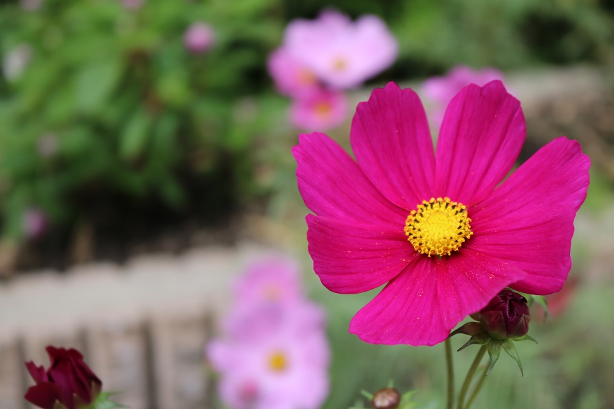 濃いピンク薄いピンクのコスモスがとても可憐に咲いています