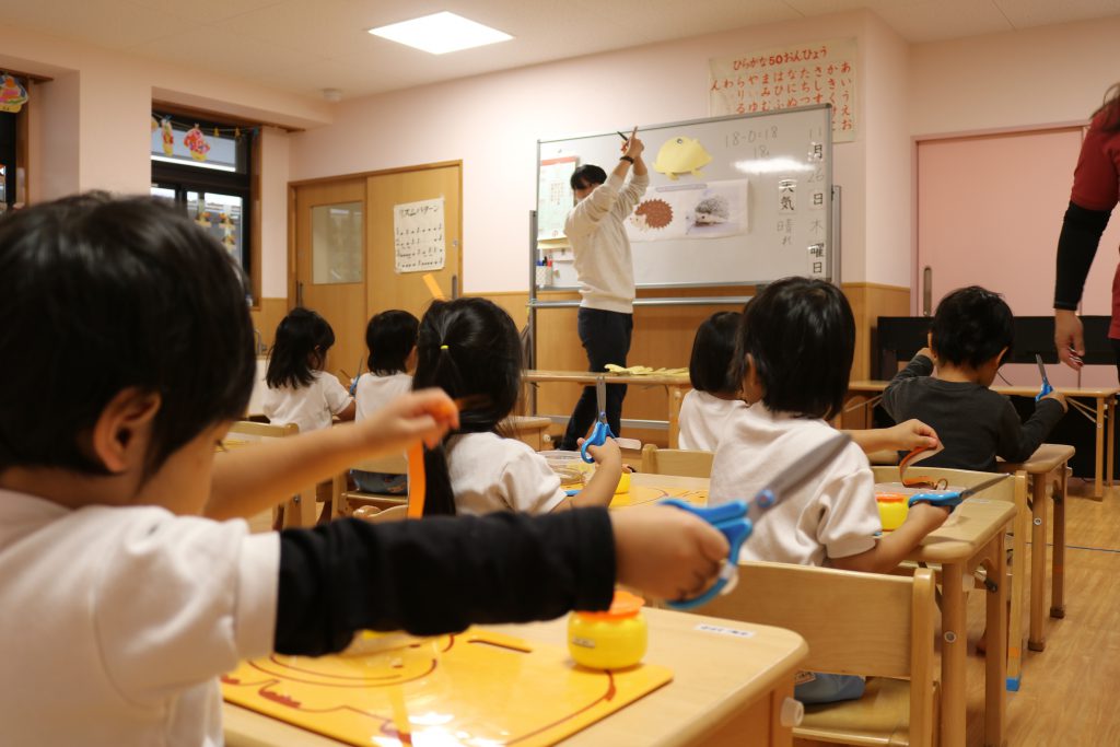 ハサミの使い方の注意をみんなでおさらいしたうえで