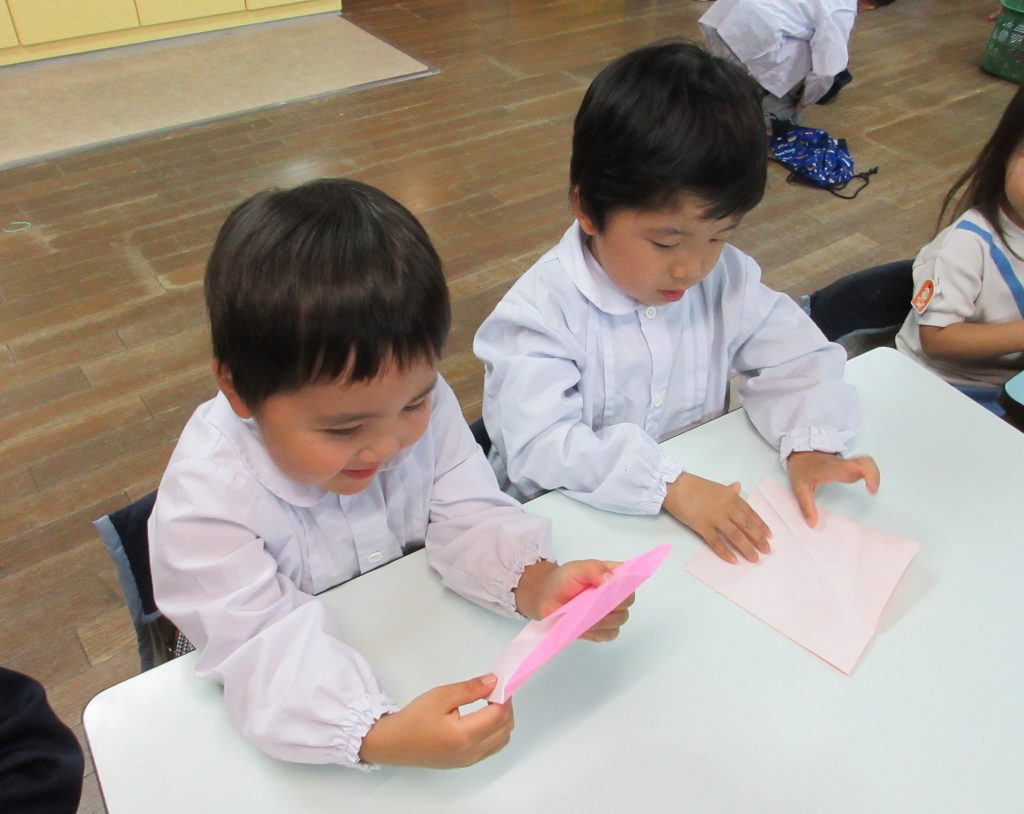 折り紙を楽しそうに折ったり