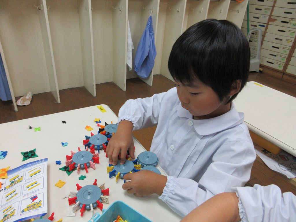 LaQを一生懸命に組み立てたり