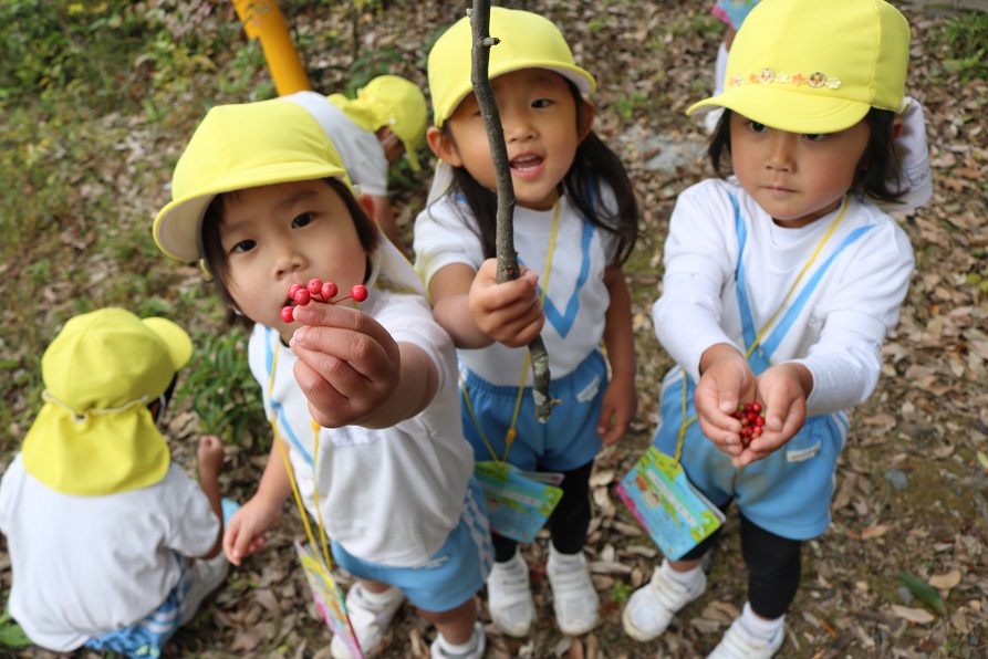 「ここのどんぐり黒いよー!」と夢中で集めたり