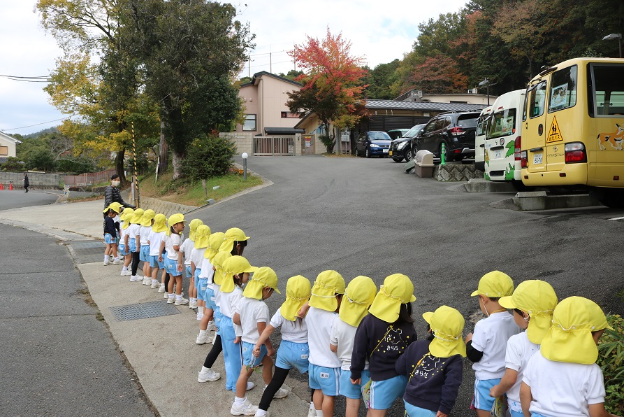 一列に横に並んで「よーいドン!!」で門まで坂道ダッシュの競争!