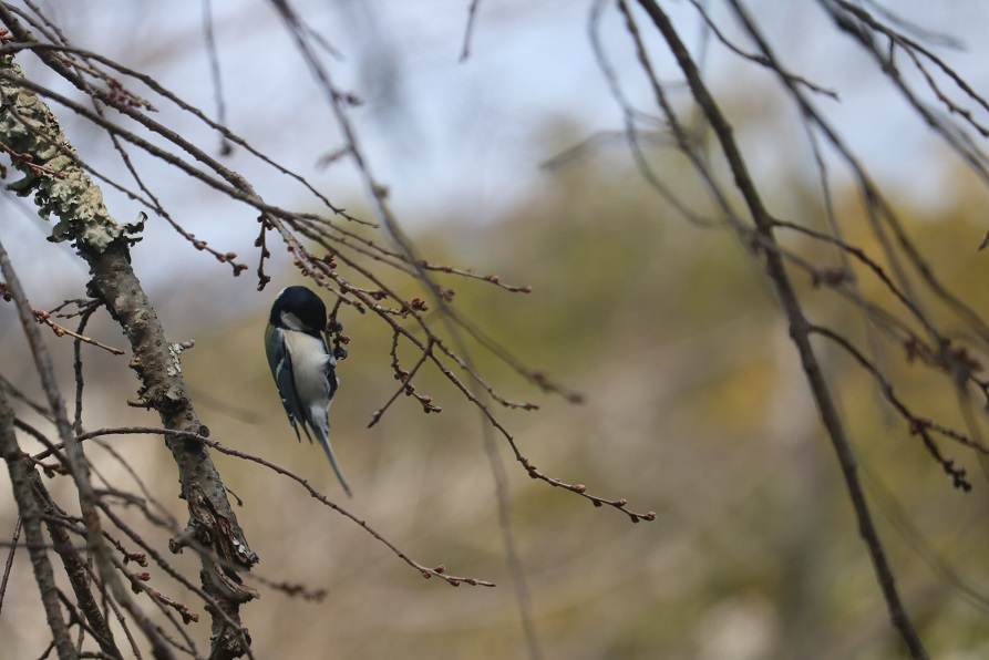 蕾の根元をつついては枝から枝へと飛び移って餌を探す風景に春を感じました