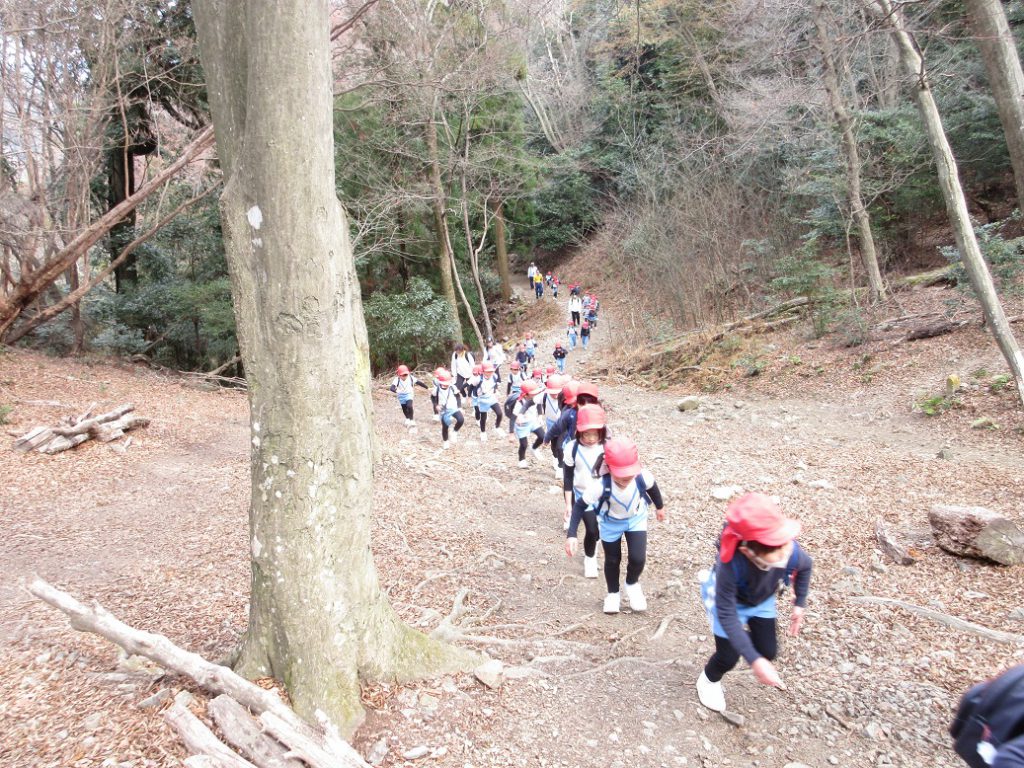 急な階段を上り山道のアップダウンを転びながらもずんずん進む子どもたち