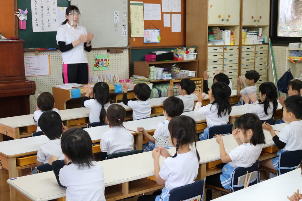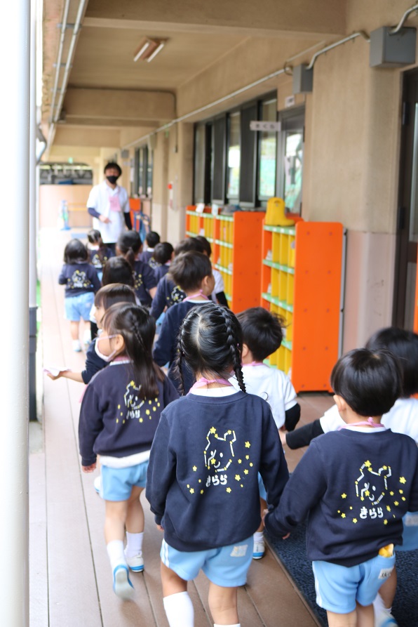 そして、年長すずらん組・年中すみれ組の朝の日課の様子です