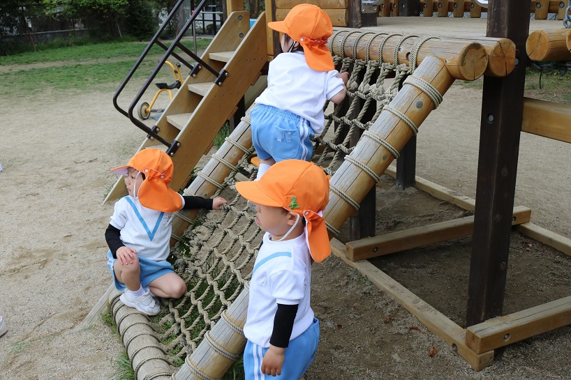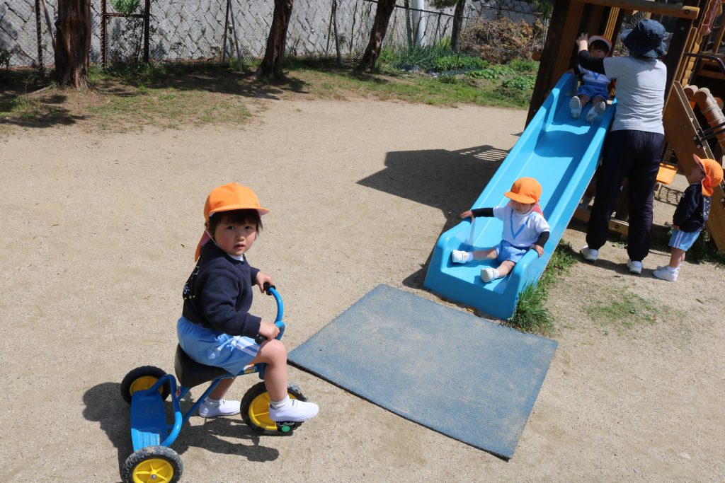 2歳児つぼみ組も広い園庭を貸し切り状態で遊びました