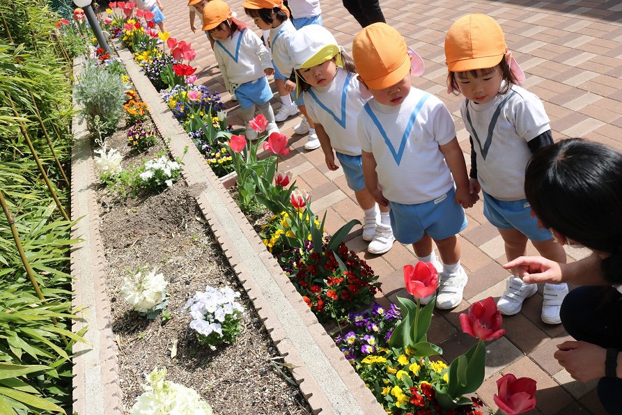 エントランスの花壇にきれいに咲いたお花をみんなで観賞したり