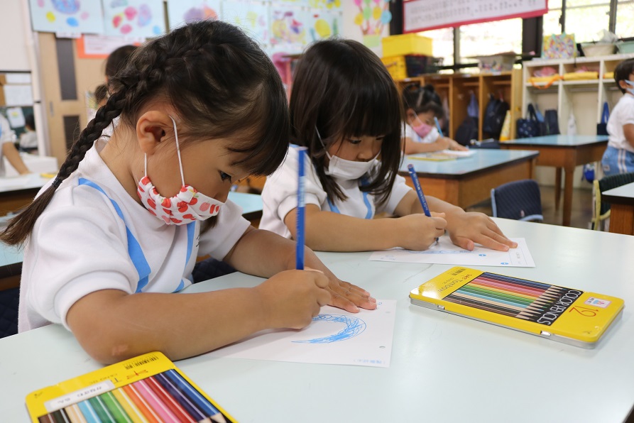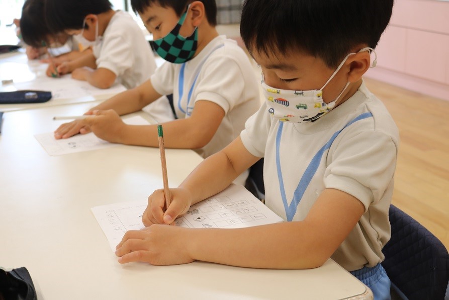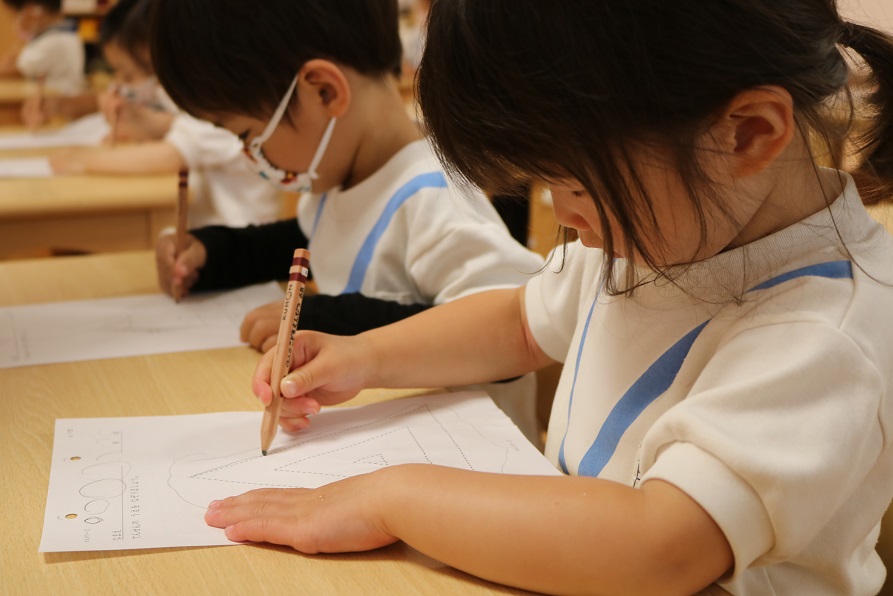 ぬり文字に取り組む年少さくら組