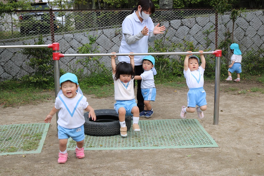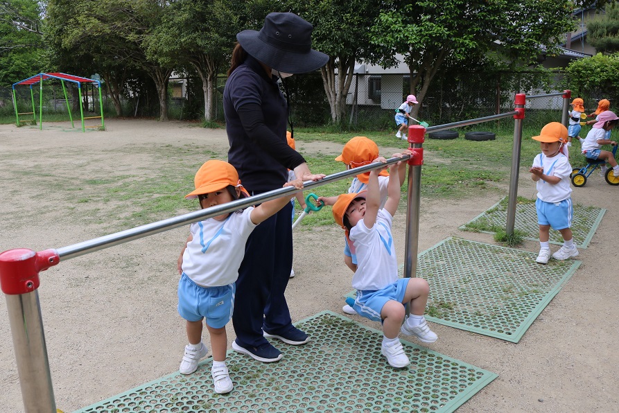 果敢に鉄棒に挑戦する姿です