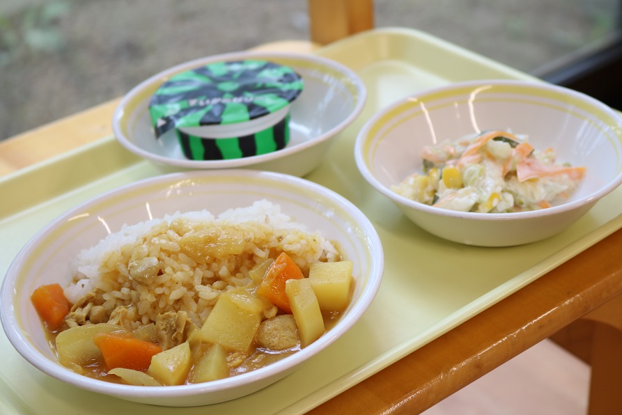年少組は園内で「おいしいカレー」の制作やスイカ割り