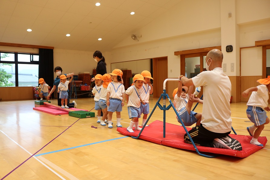 今日は年少組の川遊び、2歳児つぼみ組とこぐま組のお楽しみ会でした