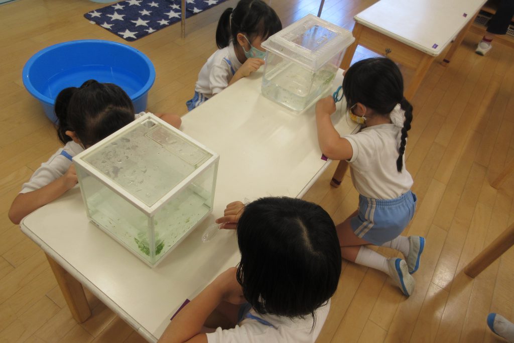 今日の年長・小学生のサマースクールは「メダカの生態」についての理科実験