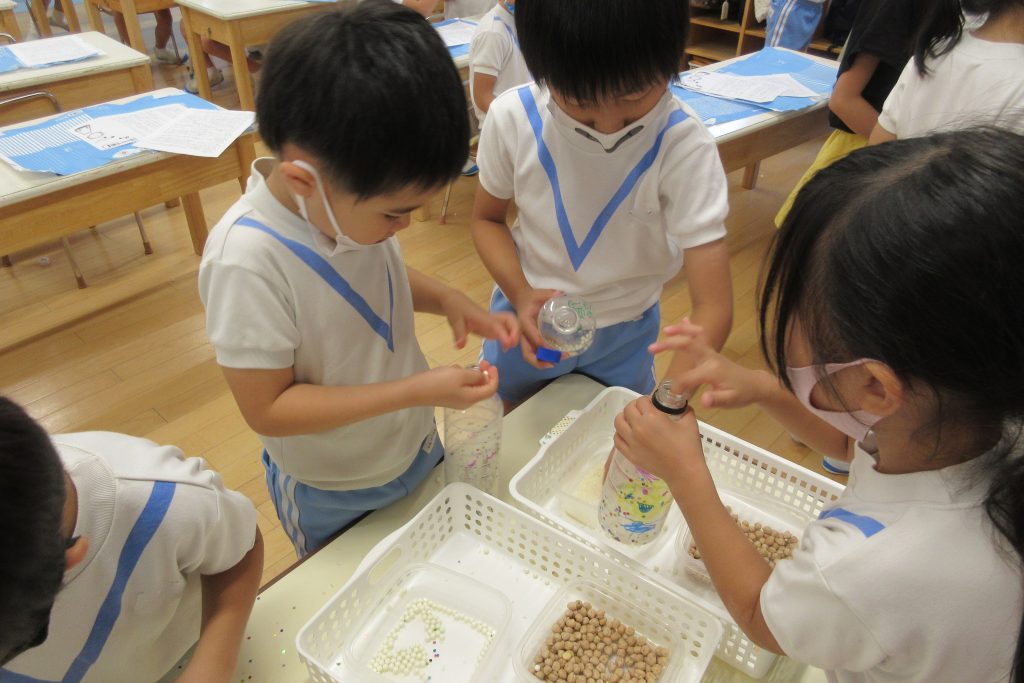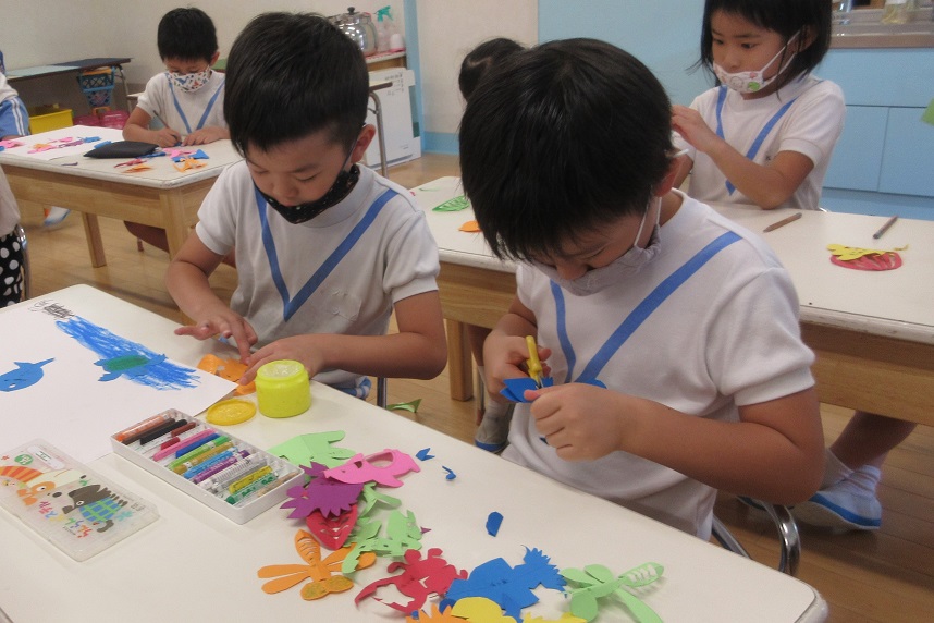 お友だちと見せ合いっこして、楽しんで作ってくれました