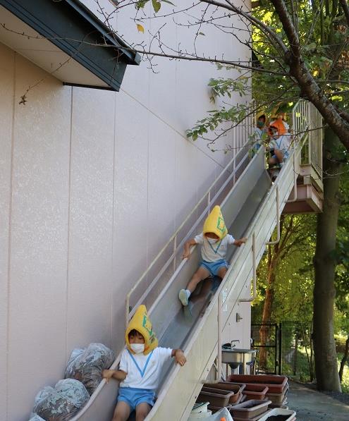 年長組と年少組は、遊戯室からの避難時に