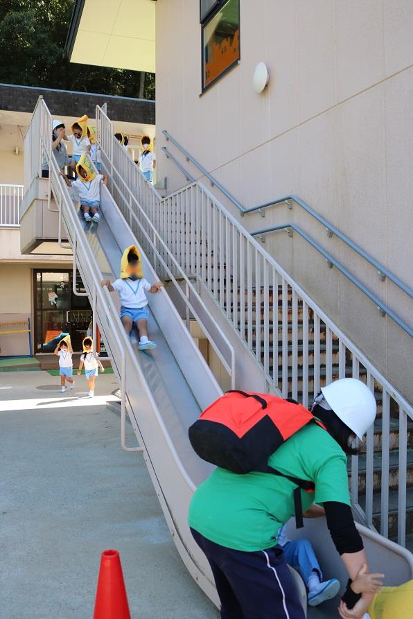 避難用滑り台を使用