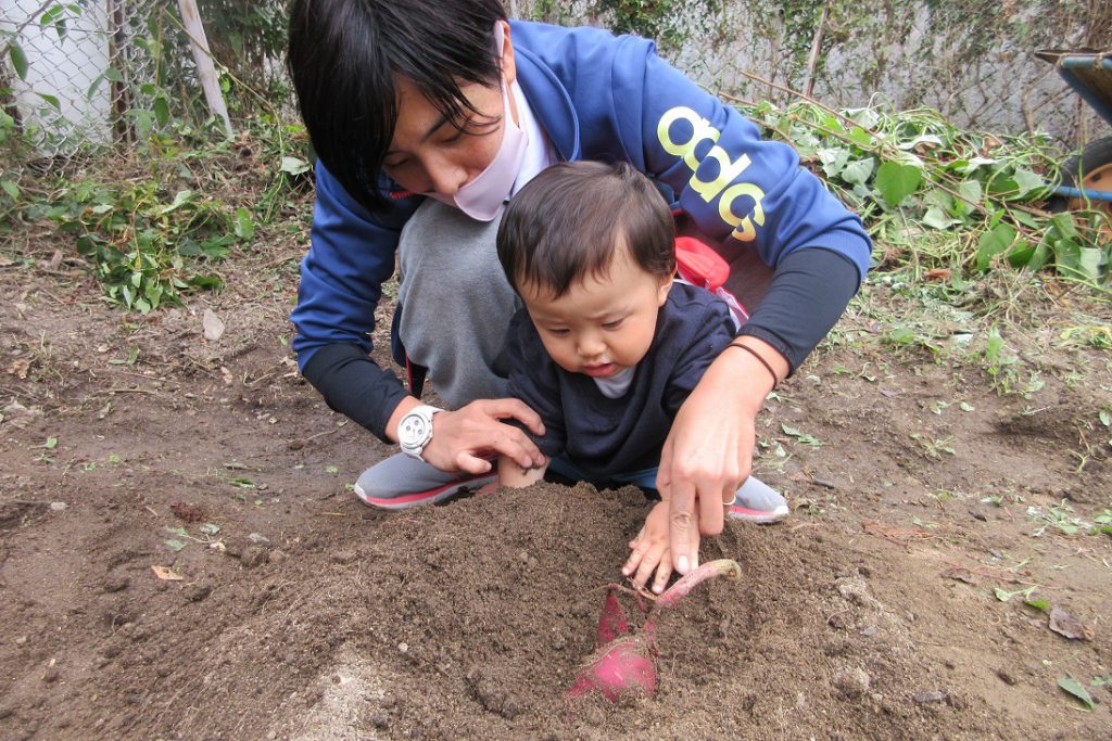 園の畑でおいもほりをしました