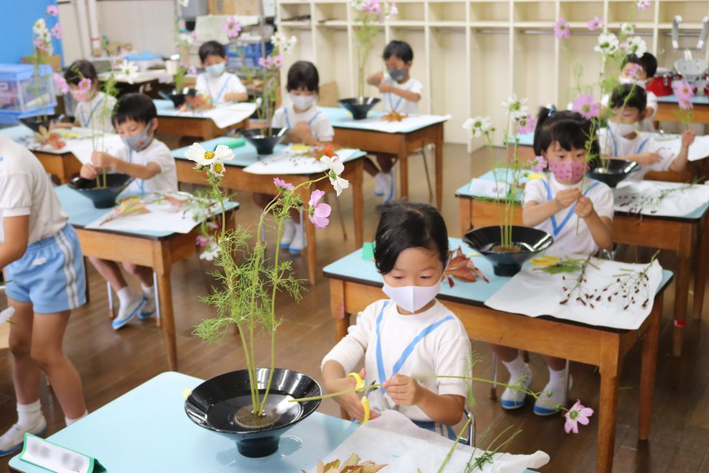 年長すずらん組の華道レッスンの日