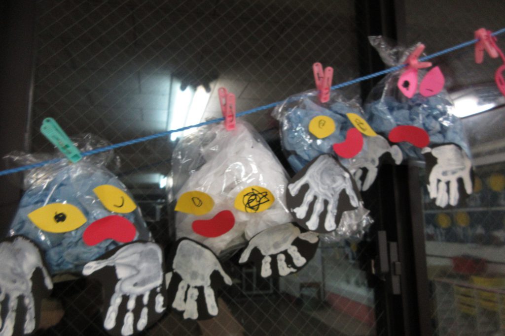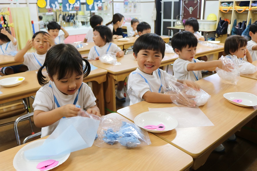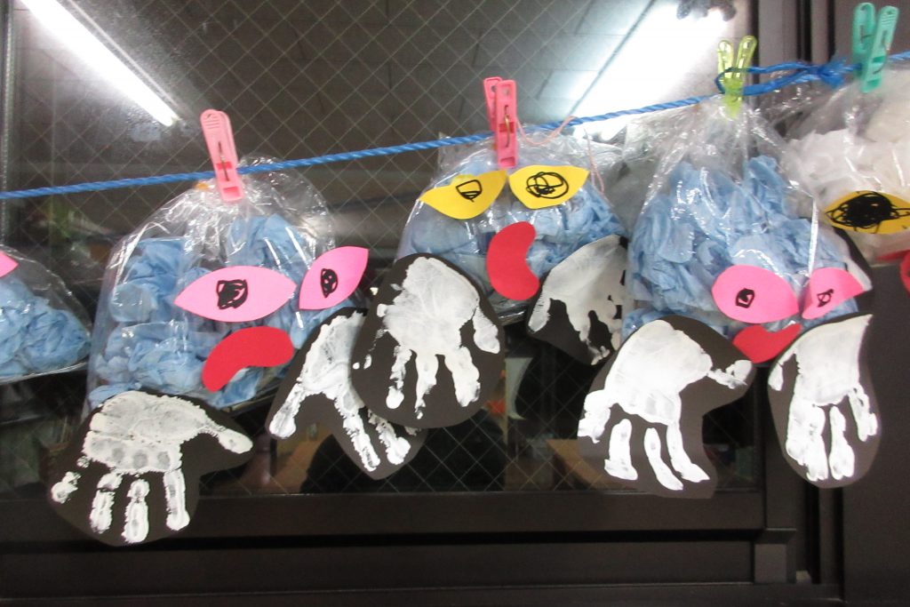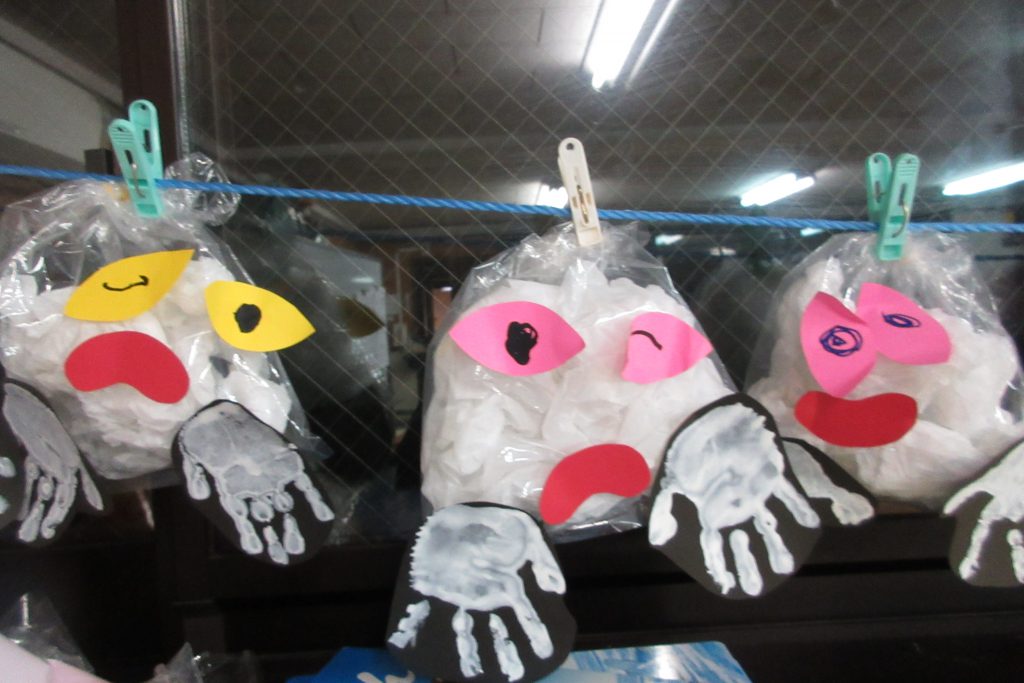 2歳児つぼみ組のクラスでは、ハロウィンに向けておばけ制作をしました
