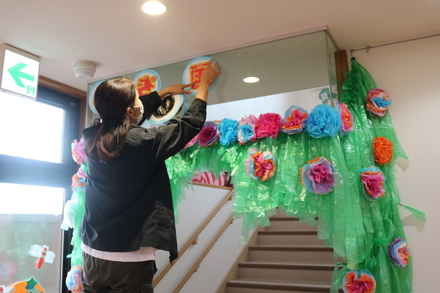 楽しい飾り付けをする先生たち