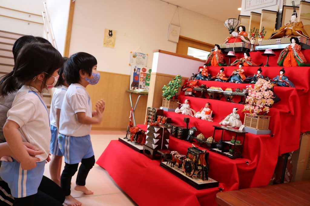 前を通るたびに園児たちが立ち止まり眺めていきます
