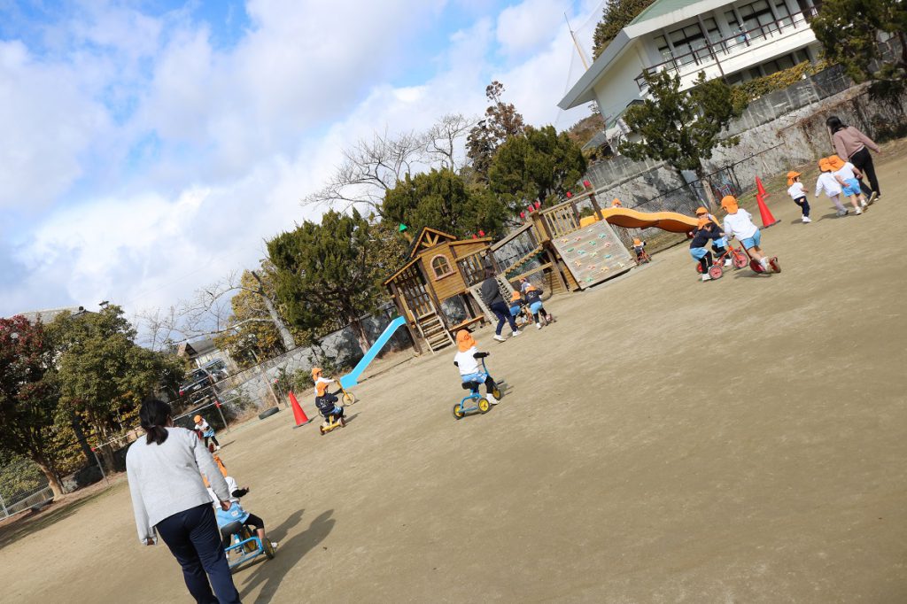 園庭では2歳児こぐま組のみんなが
