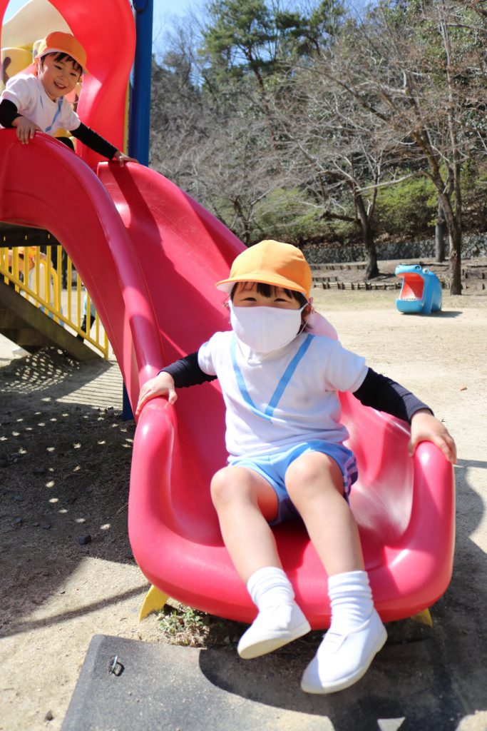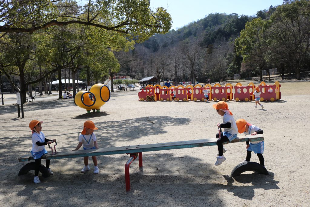 幼稚園から歩いてこどもの楽園まで行きました!