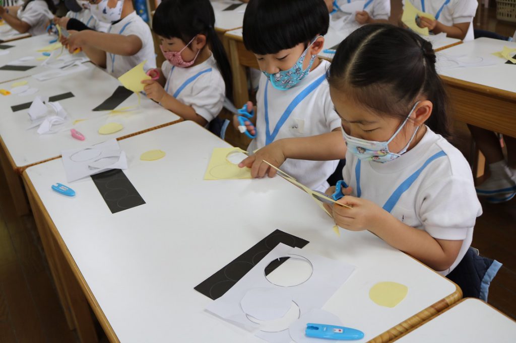 まん丸に上手にハサミを運ぶのはまだまだ難しく