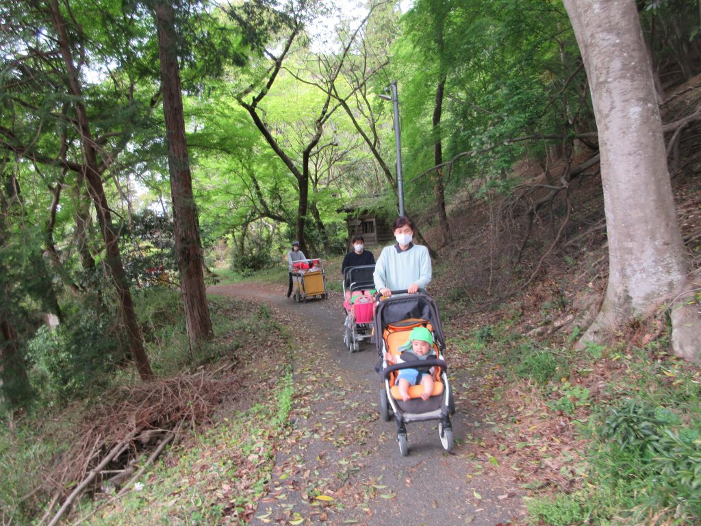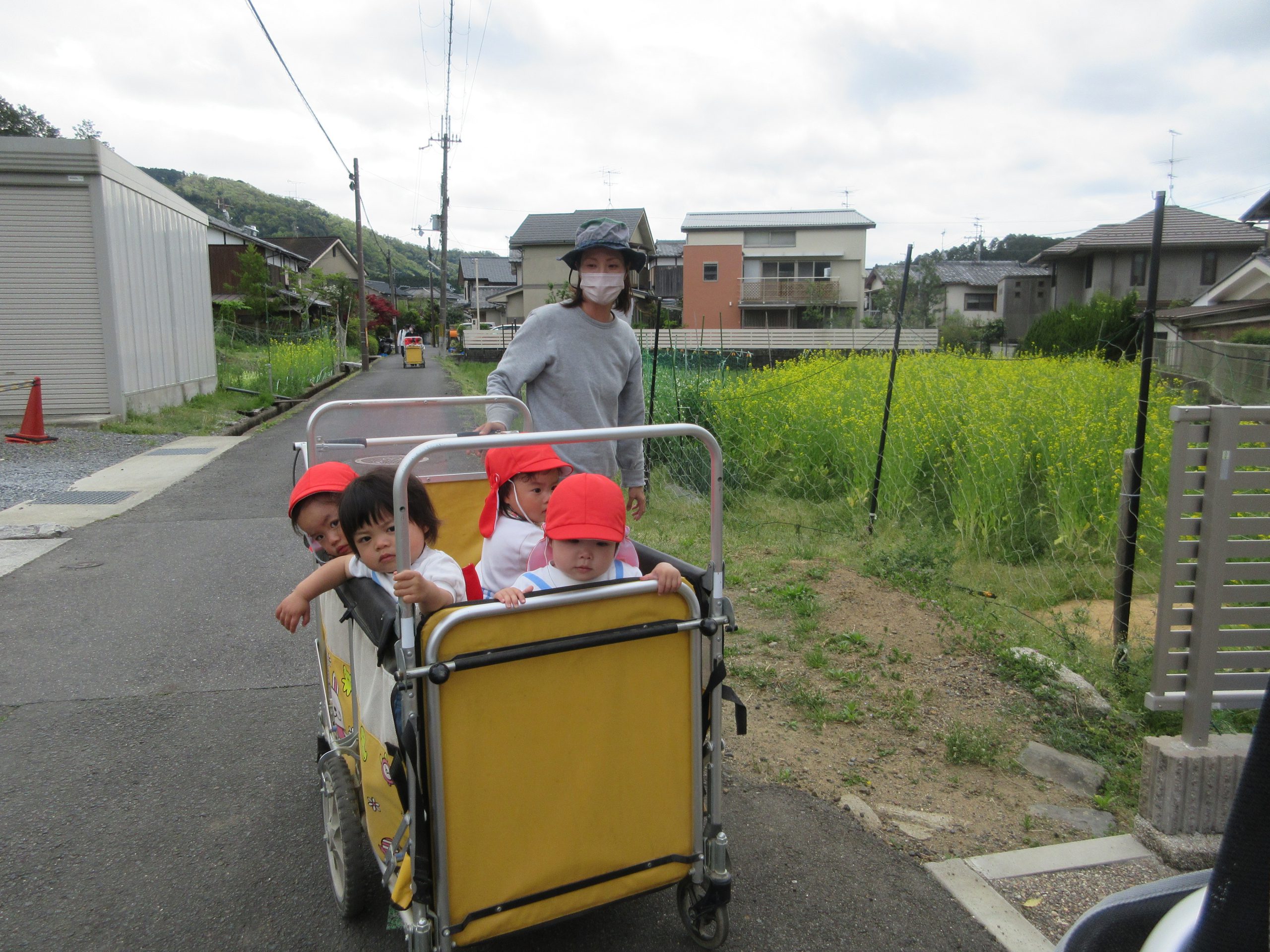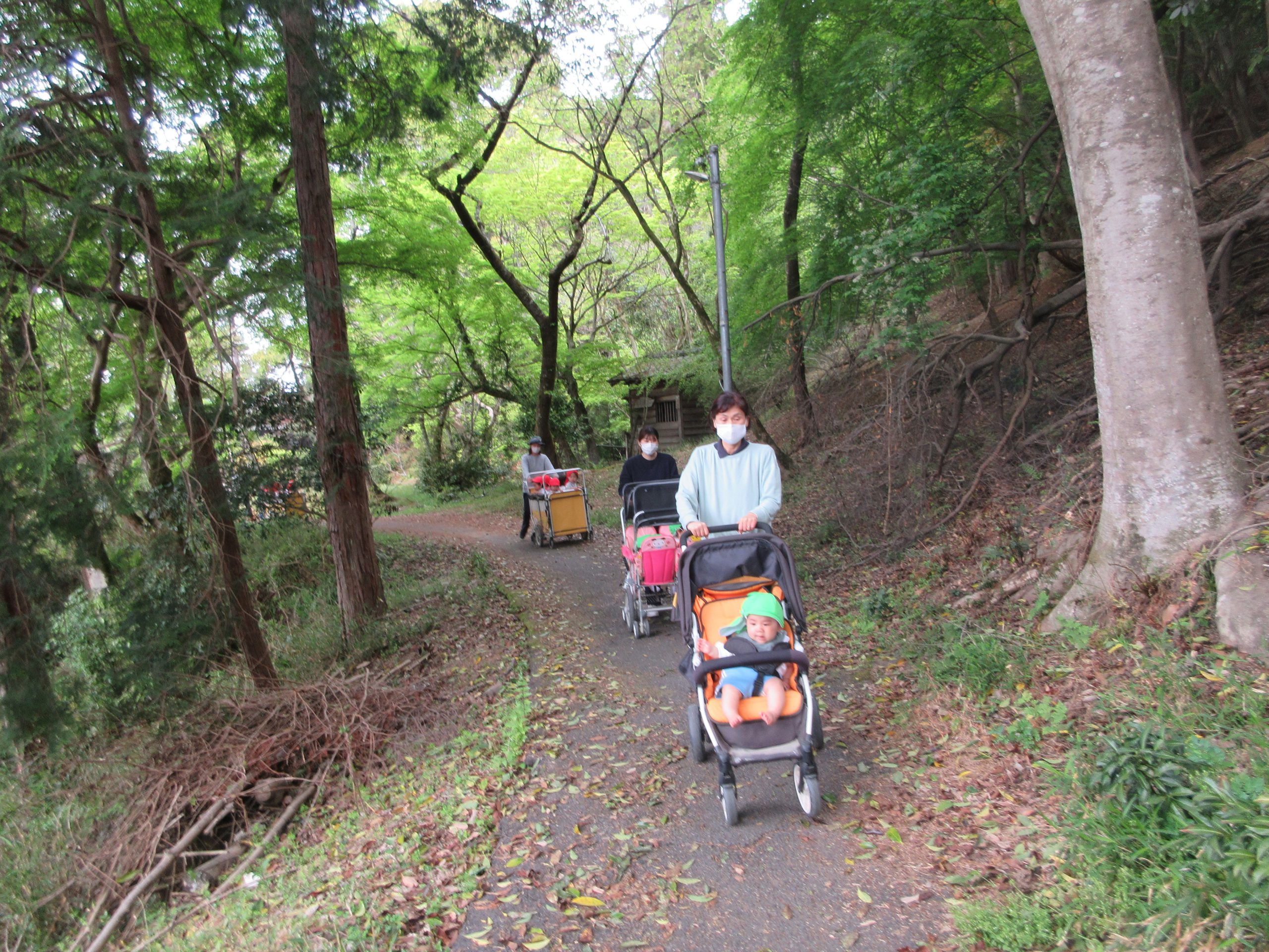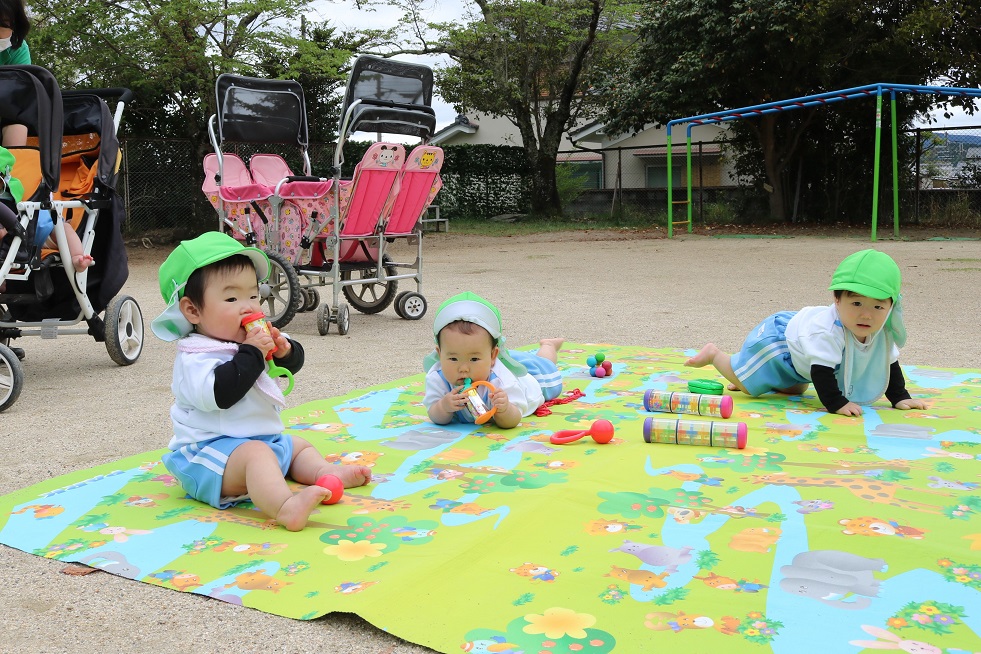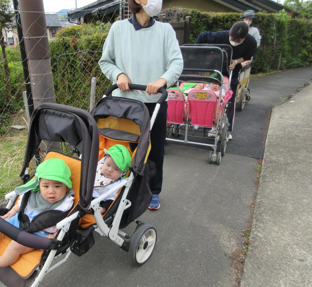 1歳児こじか組と0歳児ひよこ組のお散歩