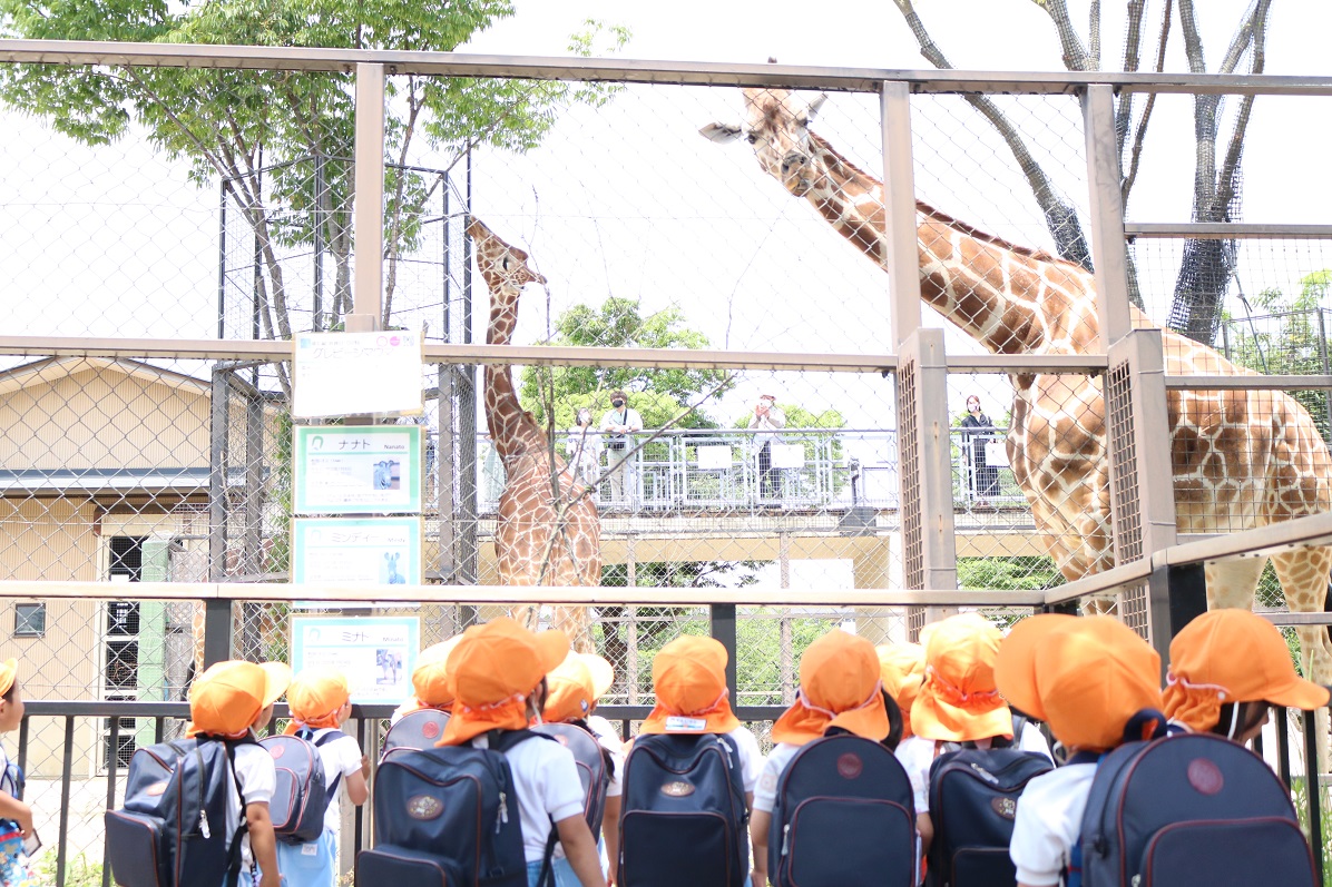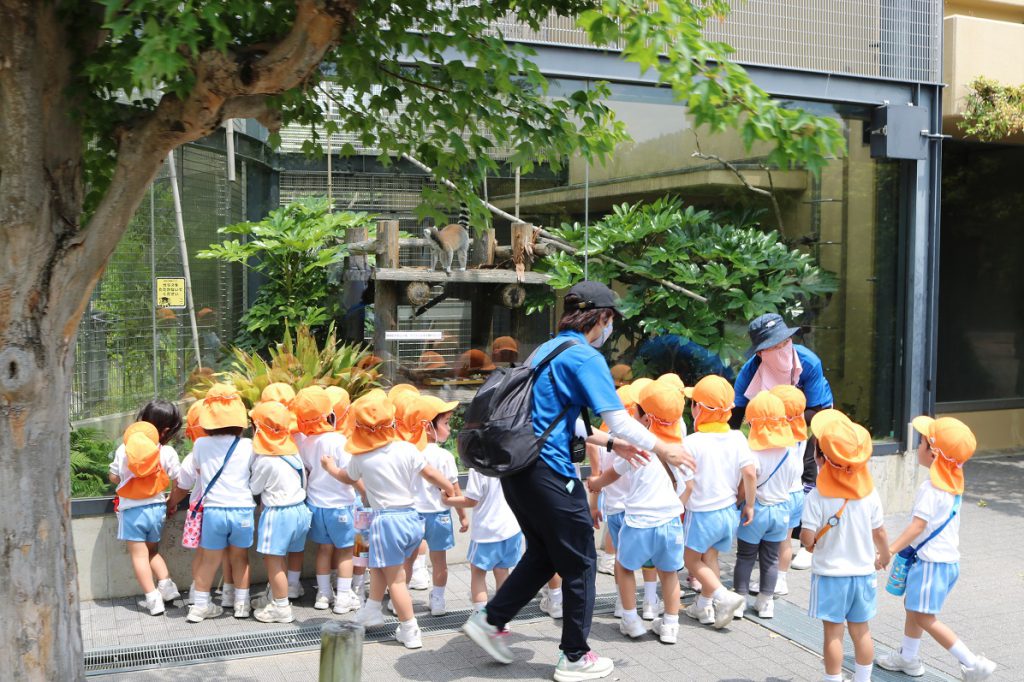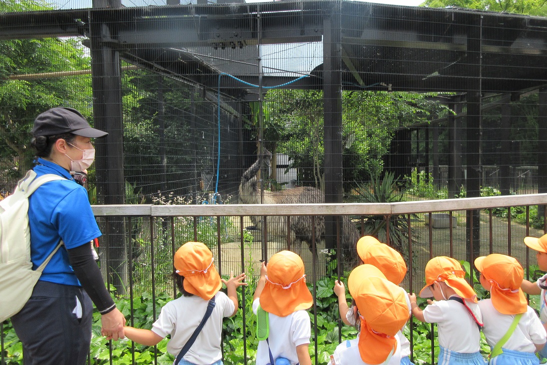お友だちと手を繋いで、いろいろな動物を見て回り、