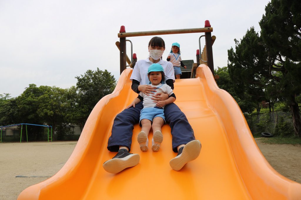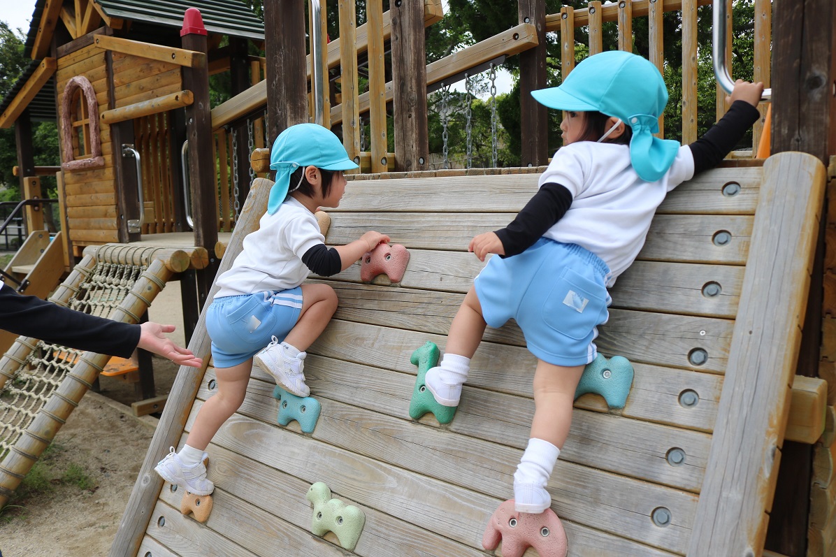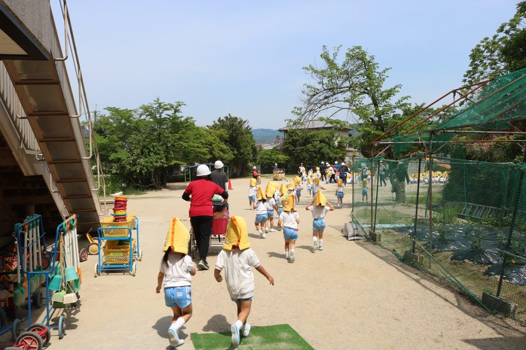体育レッスンのあと2歳児こぐま組がみんなで園庭へ
