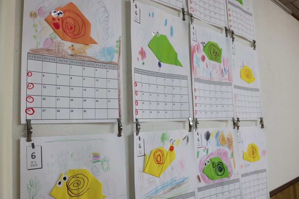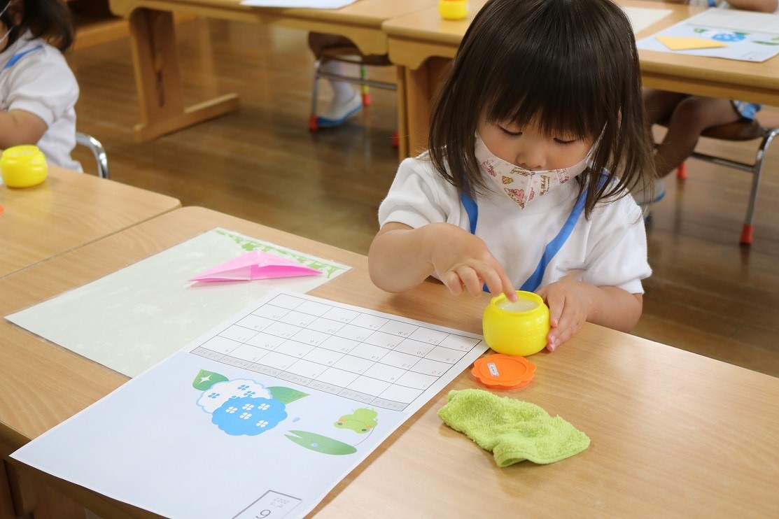 2歳児つぼみ組では6月のカレンダー制作に取り組んでいました