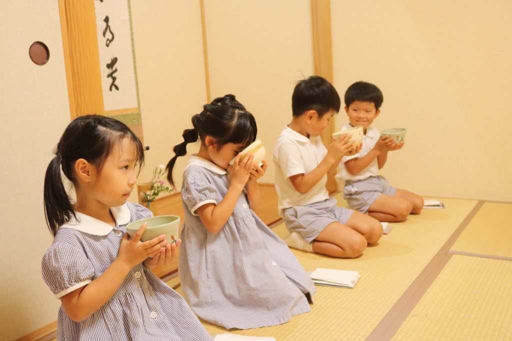 昨日に引き続き、今日は年長なでしこ組の茶道レッスンです