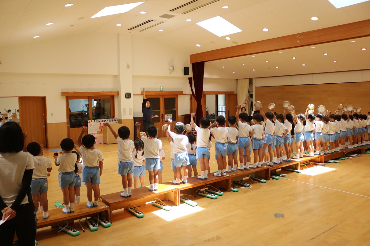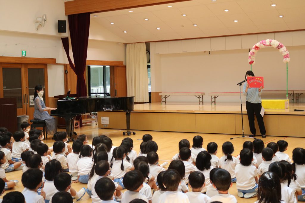 コーラス部のお母さんたちによる手遊び、紙芝居、歌にピアノと