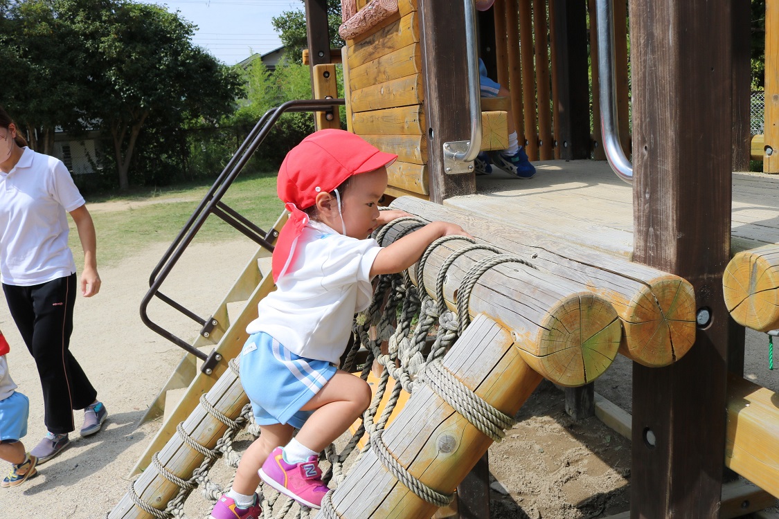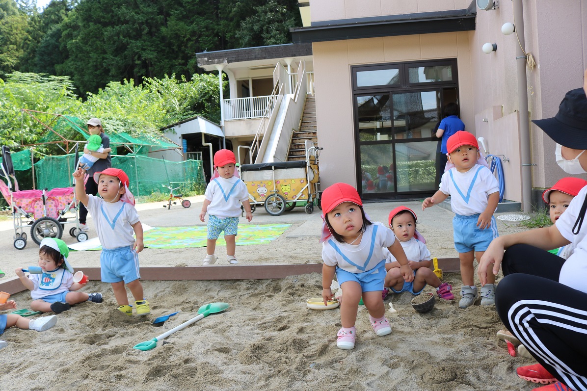 しばらくして1歳児こじか組のみんなも園庭に繰り出し