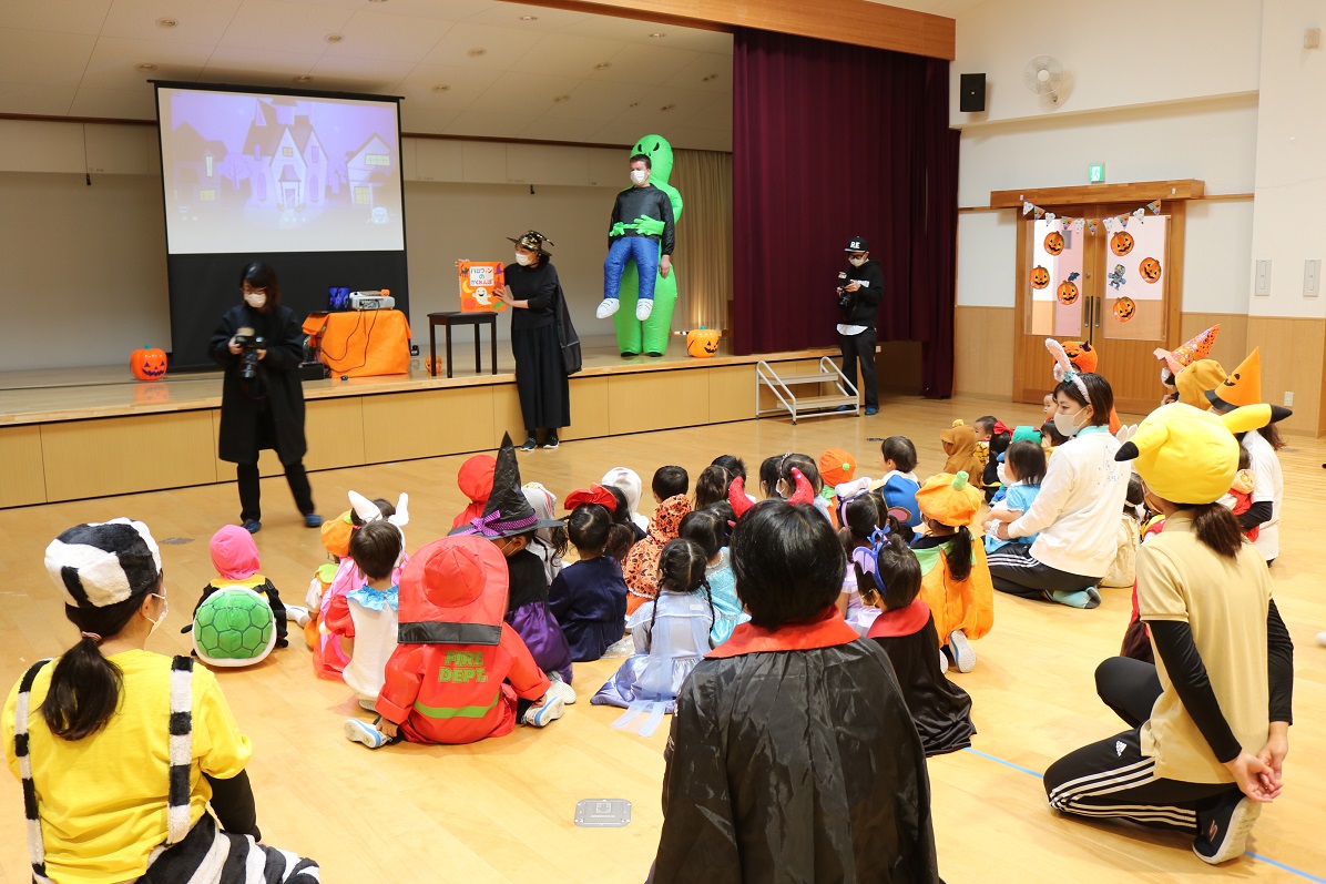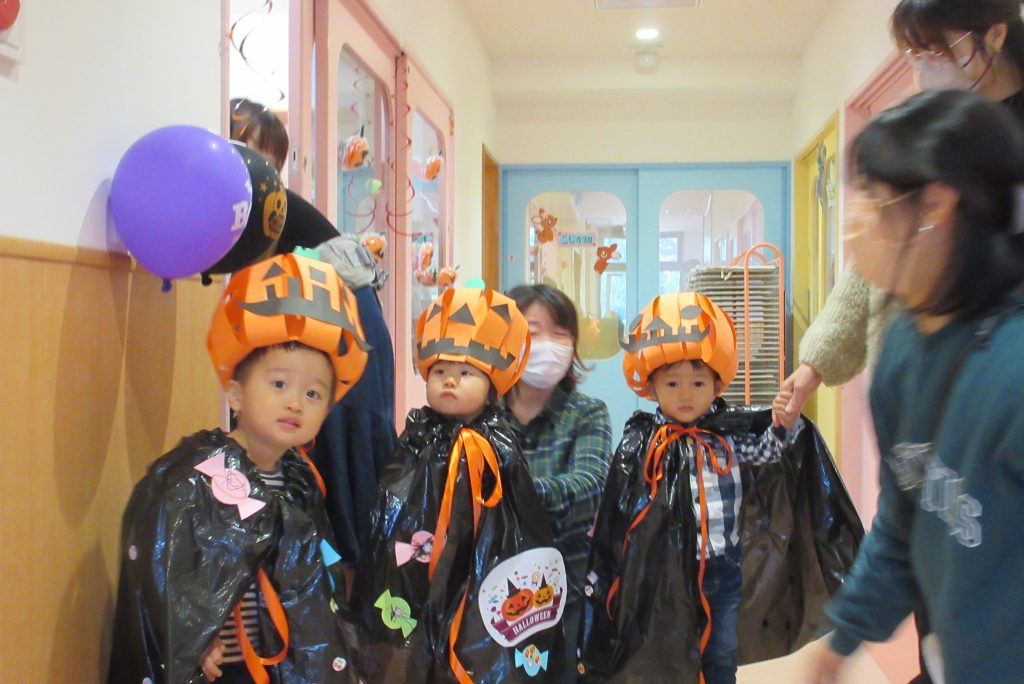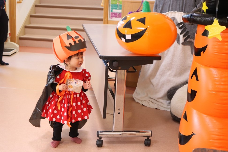 仮装をしたこどもたちで園舎がとっても華やかでカラフルで