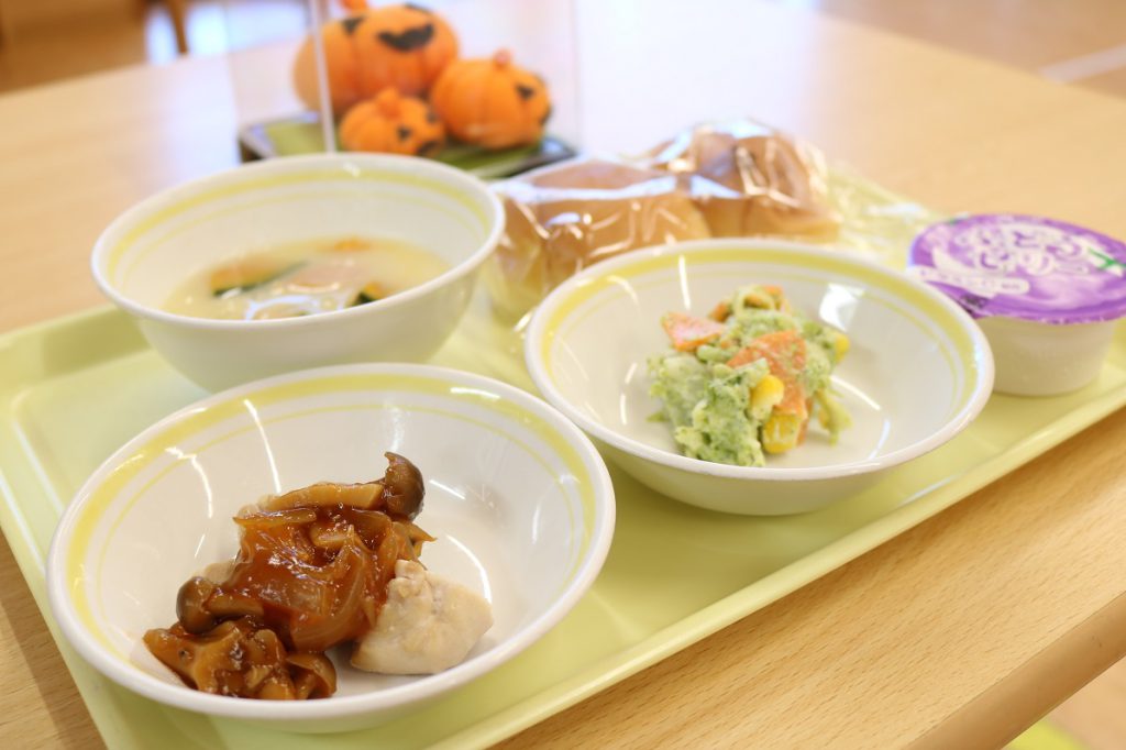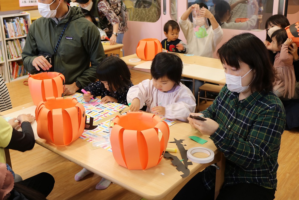 みんなが制作したハロウィンバッグにお菓子を詰めたり
