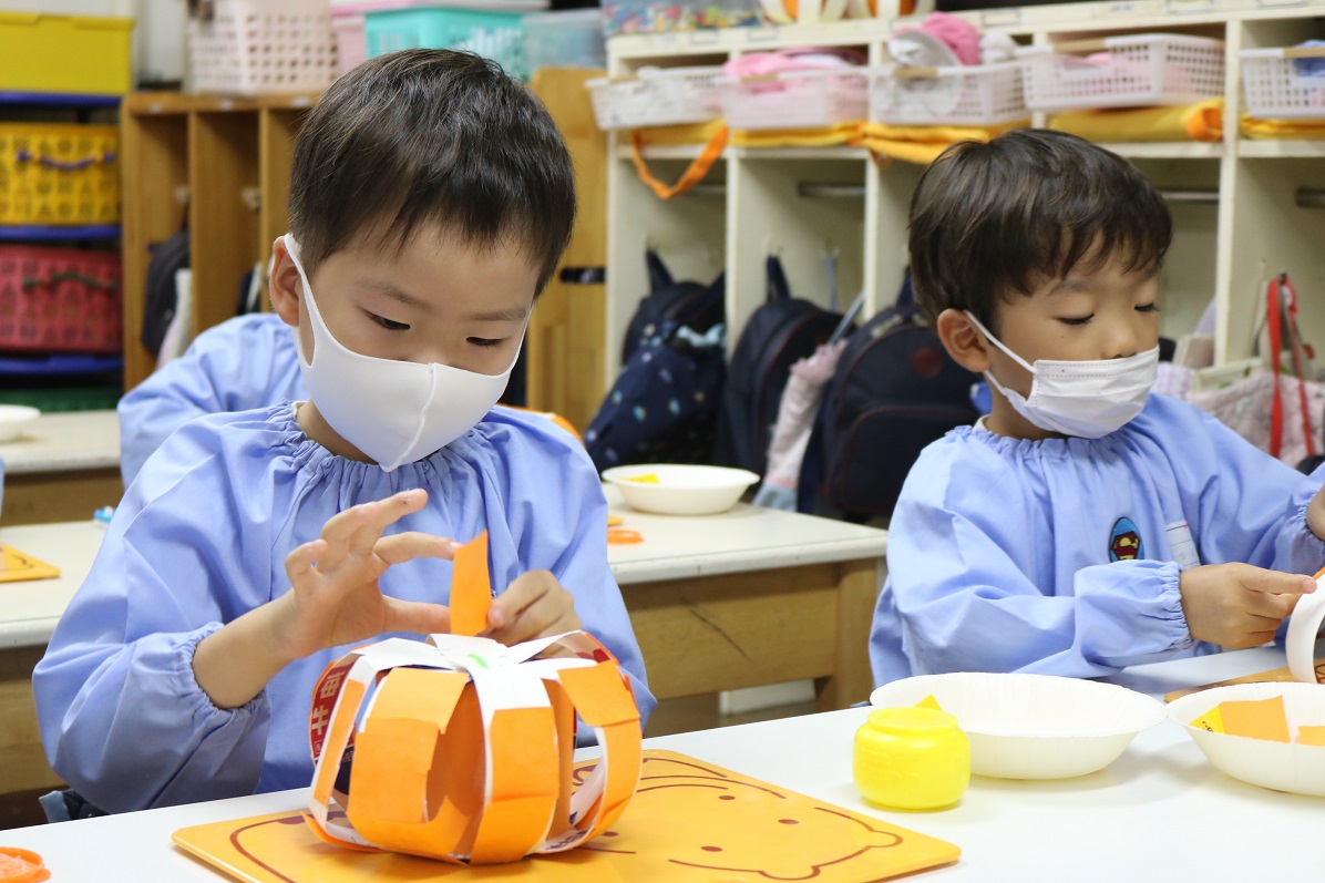 かぼちゃの形になるよう工夫しました