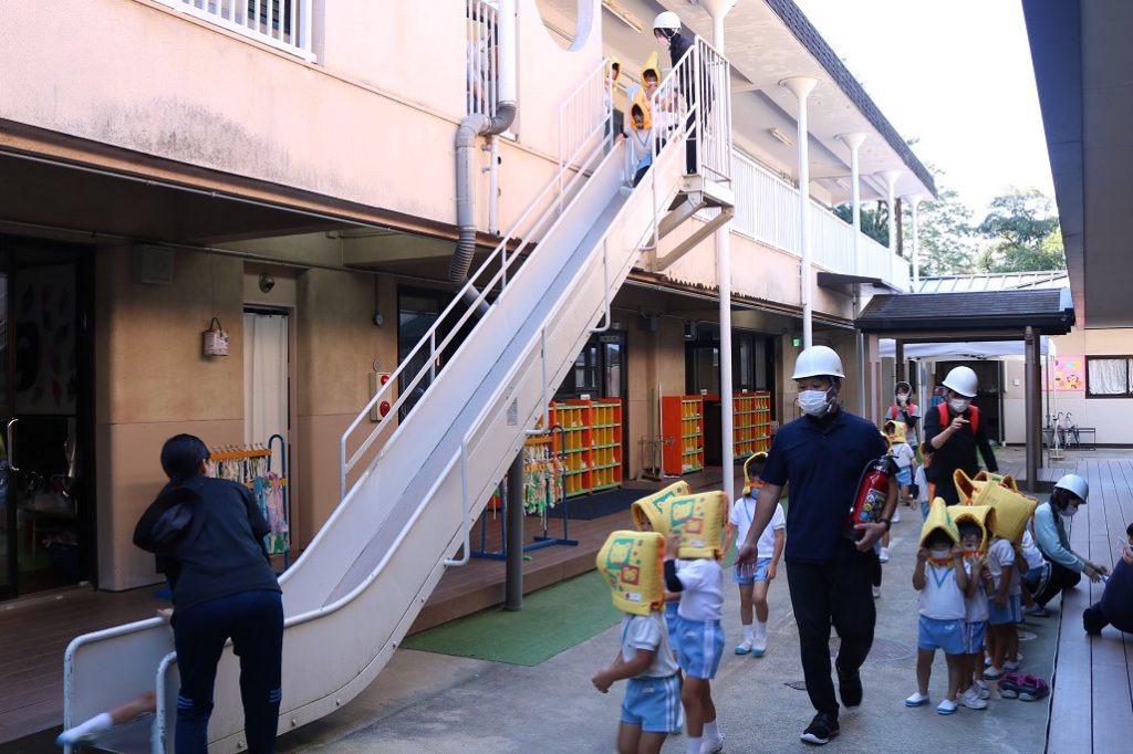 今日は年長なでしこ組が避難用すべり台を体験しました