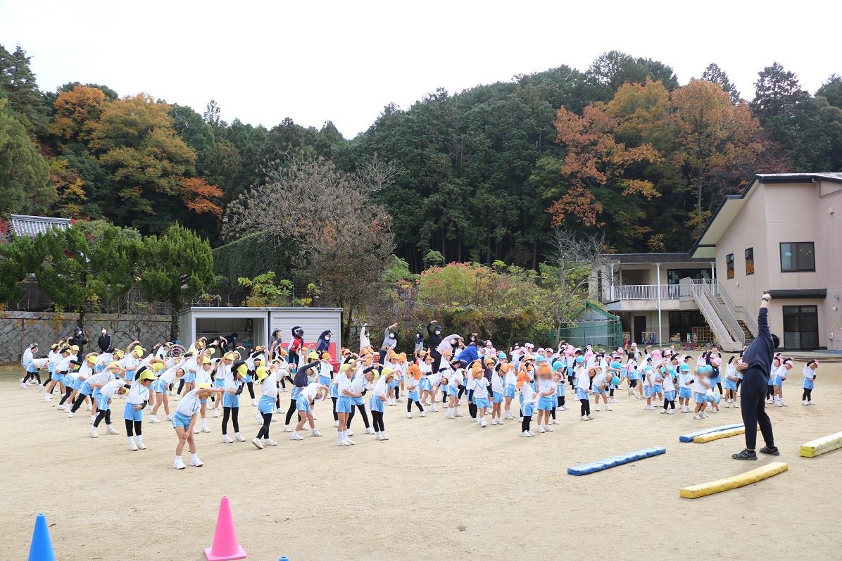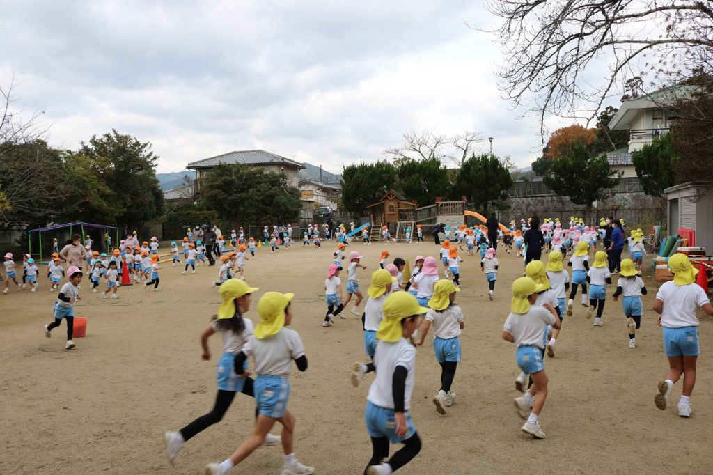 朝の園庭では2歳児~年長組までの園児が