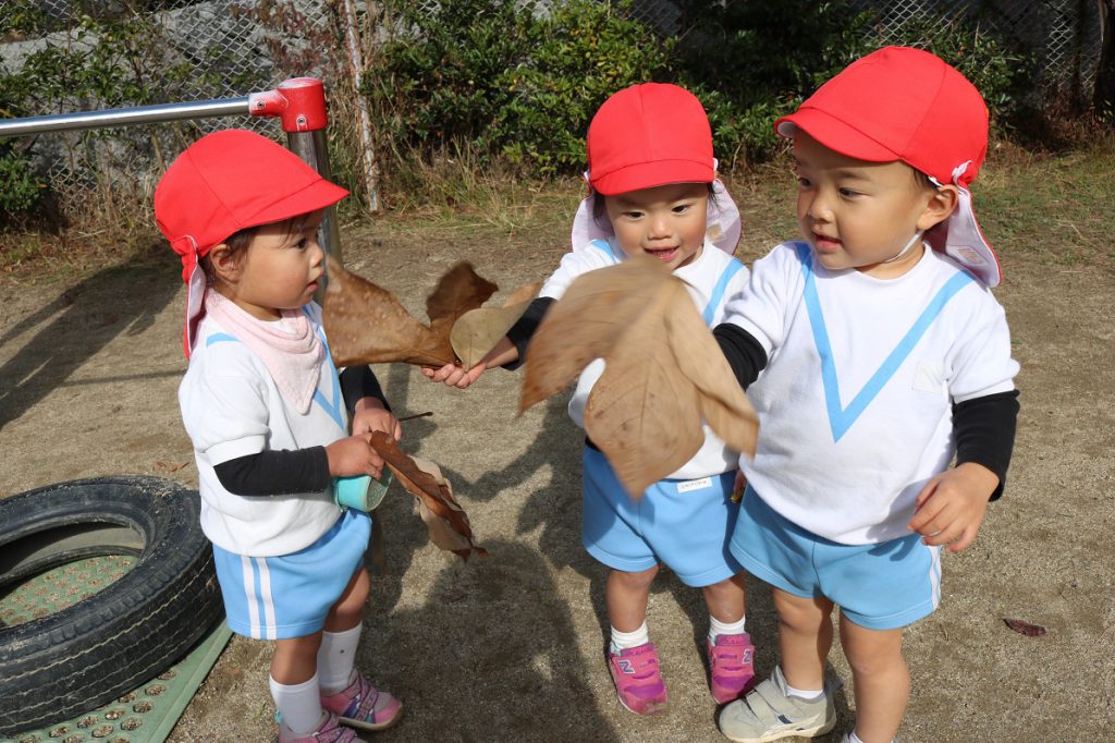 みんなの顔くらい大きな落ち葉をひろったり
