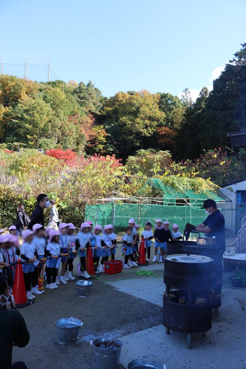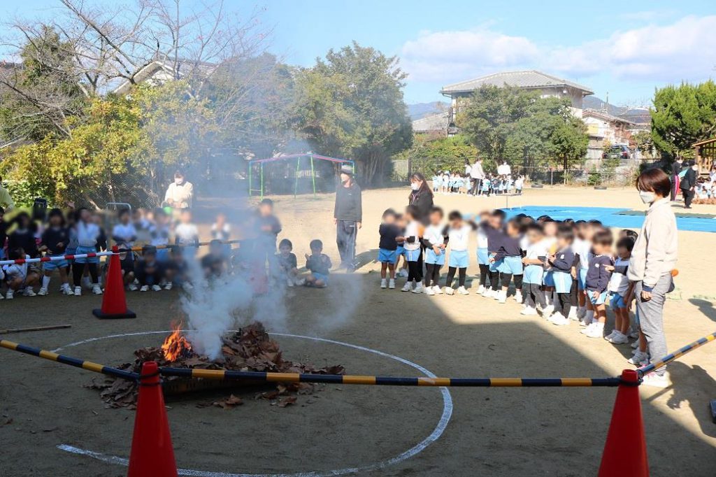 園庭では今年も石焼きと落ち葉焼きの準備が進められ
