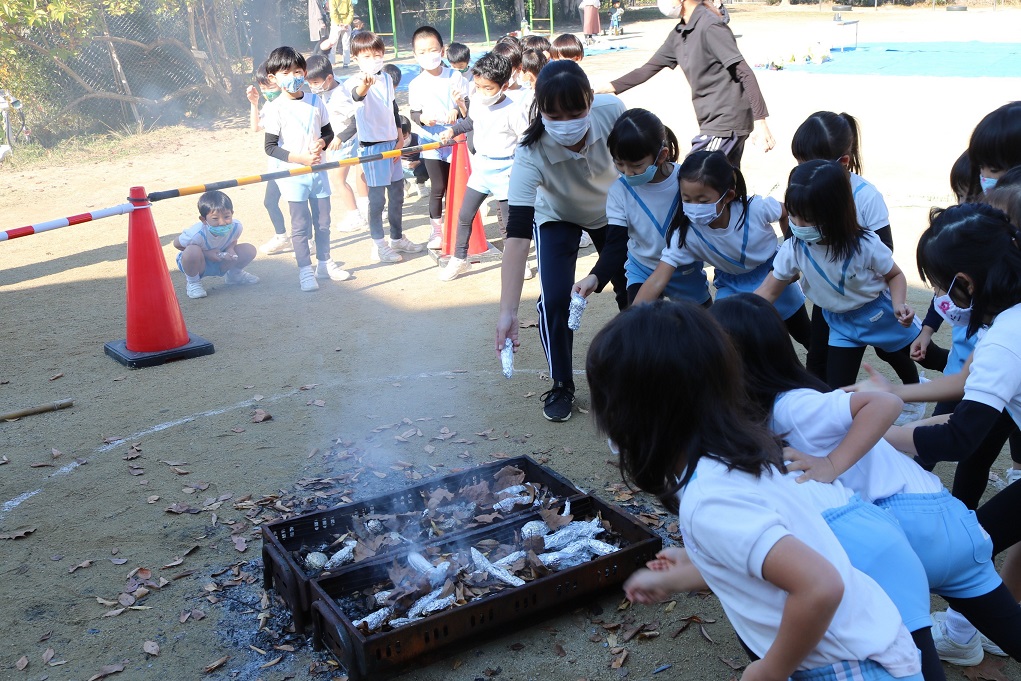 子どもたちがアルミホイルに包んで準備しておいたおいもを