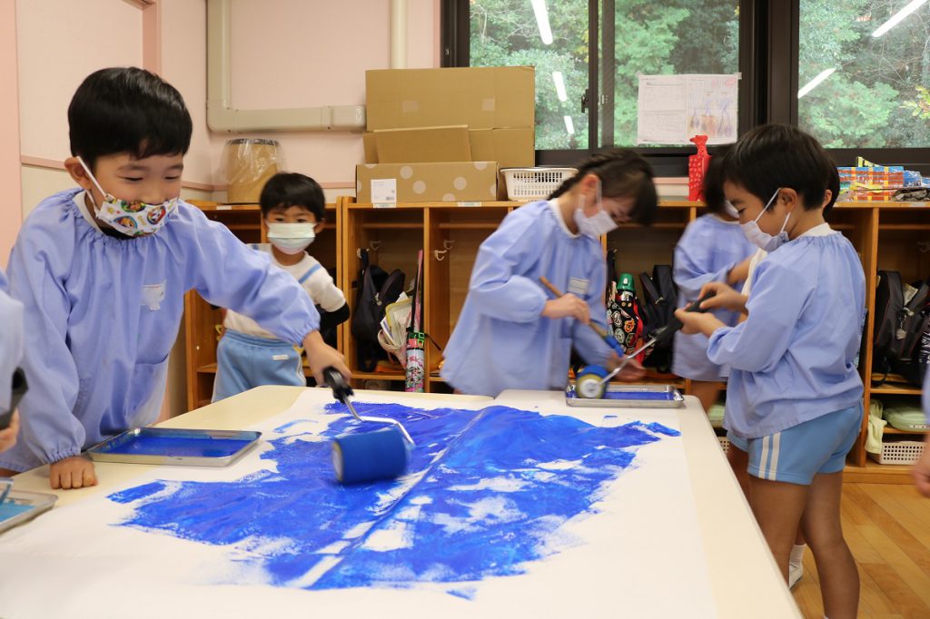 年長すずらん組は作品展にむけて共同制作進行中でした